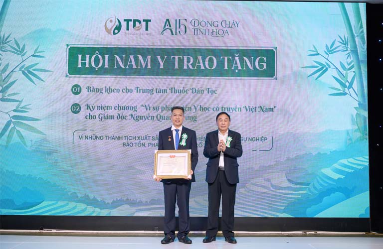 Một trong những điểm khiến sự kiện A15 – Dòng chảy tinh hoa có sức nặng đặc biệt chính là sự ghi nhận từ Hội Nam y Việt Nam đối với Trung tâm Thuốc Dân Tộc. Trong lễ kỷ niệm, Trung tâm Thuốc Dân Tộc vinh dự nhận: