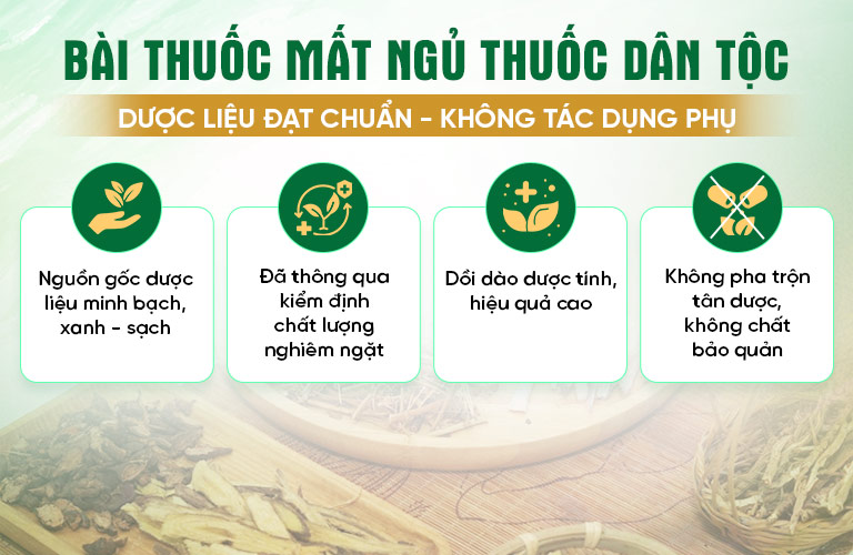 Bài thuốc là thành quả của đề tài “Ứng dụng thảo dược Đông y trong điều trị mất ngủ và bệnh lý liên quan”. Bài thuốc Mất Ngủ Thuốc Dân Tộc là cứu tinh hoàn hảo cho mẹ bỉm bị mất ngủ sau sinh tìm lại giấc ngủ ngon, tự nhiên với nhiều ưu điểm vượt trội.